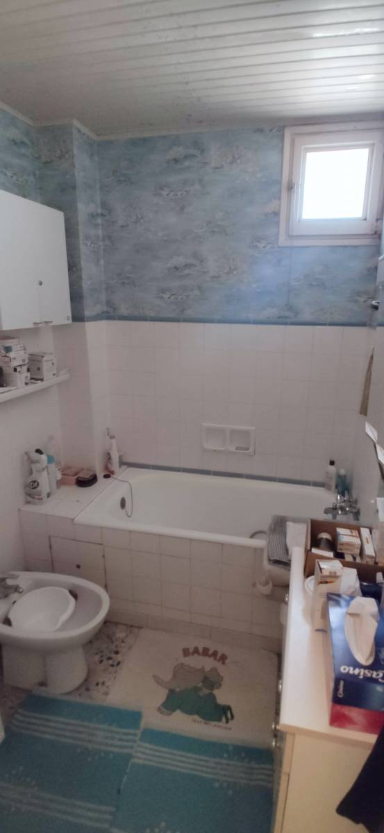 Cette salle de bain sur Istres, était équipée d’un petit meuble lavabo avec miroir et d’une baignoire. Cette baignoire prenait la majeure partie du volume/espace disponible de cette salle de bain et cela présentait un risque pour la personne d’enjamber tous les jours celle-ci pour pouvoir faire sa toilette. Le carrelage de cette salle de bain était d'origine et avait plusieurs dizaines d’années.