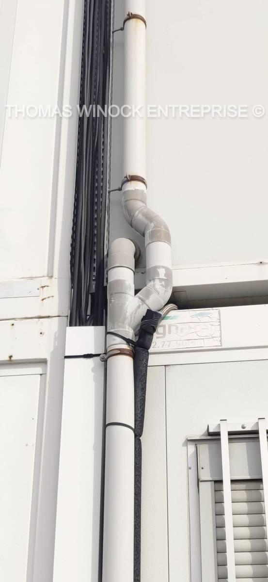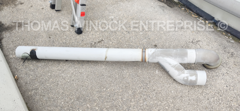 Thomas Winock Entreprise est alors intervenu pour réparer où se trouvait le bloc à l'aide de sa caméra et à remplacé la partie de tuyaux PVC en 100 mm x 3 mm qui obstruait l'évacuation.